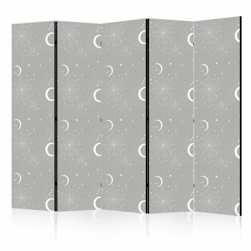 Parawan - Kosmiczne Fajerwerki - elegancki wzór z księżycami i gwiazdami na szarym tle – funkcjonalność i elegancja w jednym