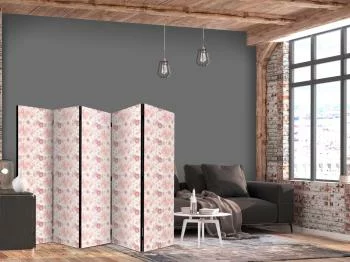Parawan - Różowe rozkwitanie - kwiaty w ciepłych kolorach na białym tle – funkcjonalność i elegancja w jednym