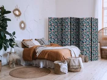 5/3-częściowy parawan może zostać wykorzystany do przedzielenia przestrzeni sypialnej i mieszkalnej lub kuchni i salonu w kawalerkach oraz mieszkaniach typu loft i studio. Doskonale sprawdzi się również do stworzenia namiastki prywatności w wieloosobowych pokojach dziecięcych.