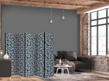Parawan - Rybki wśród liści - Barwne rybki Koi wśród ciemnozielonych lisci nenufarów na tafli granatowej wody to doskonały sposób na ubogacenie wnętrza nietuzinkową ozdobą.  Wysokiej jakości wzór oraz najwyższa klasa materiałów sprawią, że parawan idealnie podkreśli wystrój wnętrza, jednocześnie dyskretnie dzieląc pomieszczenie, a także zasłaniając mniej reprezentatywne jego części.