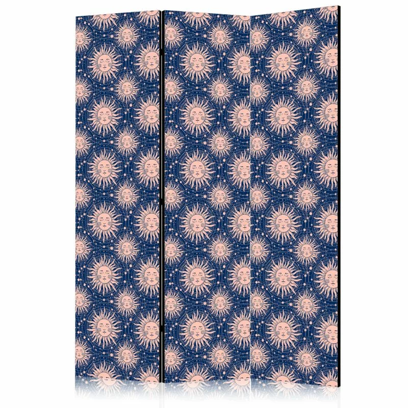 Parawan - Słoneczne Wzory - powtarzający się motyw słońca na granatowym tle – funkcjonalność i elegancja w jednym