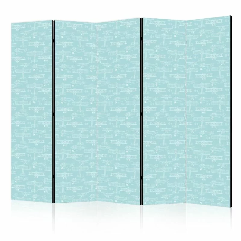 Parawan - Szkic - zarys budowy samolotu białym kolorem na turkusowym tle – funkcjonalność i elegancja w jednym