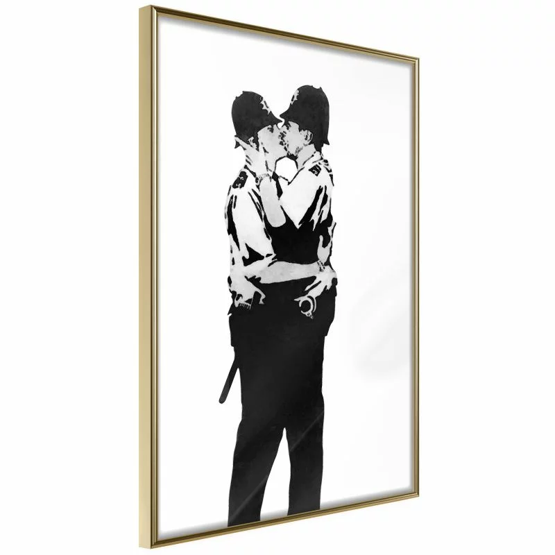 Szukasz niedrogiego i prostego sposobu, by odświeżyć wygląd wnętrza? Dobrym pomysłem może być plakat(y) na ścianę z ciekawym motywem. Plakat - Kissing Coppers doskonale się sprawdzi w tej roli.