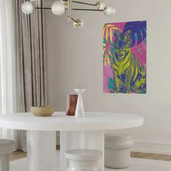 Szukasz niedrogiego i prostego sposobu, by odświeżyć wygląd wnętrza? Dobrym pomysłem może być plakat(y) na ścianę z ciekawym motywem. Plakat - Kolorowy tygrys - Intensywne barwy tygrysa w otoczeniu tropikalnych roślin doskonale się sprawdzi w tej roli.