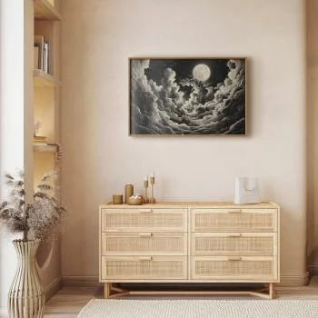 Szukasz niedrogiego i prostego sposobu, by odświeżyć wygląd wnętrza? Dobrym pomysłem może być plakat(y) na ścianę z ciekawym motywem. Plakat - Księżyc i gwiazdy śpiewające wśród wielkich chmur doskonale się sprawdzi w tej roli.