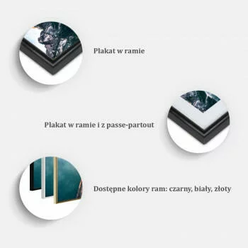 Wkładka passe-partout w kolorze écru podkreśli kolorystykę plakatu i stworzy dodatkowy kontrast między grafiką, ramą i ścianą. Dodatkowo, daje ona delikatne wrażenie trójwymiarowości oprawy, a także pełni rolę kolejnej warstwy ochronnej plakatu. Plakat jest zabezpieczony szkłem akrylowym, z tyłu ramy jest zamocowana zawieszka montażowa.