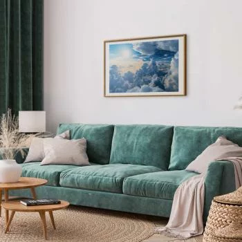 Żeby stworzyć niebanalną aranżację wnętrza, wcale nie trzeba wiele. Wystarczy umieścić na ścianie dobrze dobrany, pasujący charakterem do reszty wystroju plakat. Plakat taki jak Plakat - Symfonia Światła: Słońce i chmury współgrające na przepięknym niebie doskonale sprawdzi się w różnych pomieszczeniach w domu: w sypialni, salonie czy kuchni; oraz w biurze. Oryginalny motyw na ścianie przyciąga wzrok i nadaje wnętrzu awangardowego charakteru. Osoba, która zdecyduje się na powieszenie ciekawego plakatu, będzie postrzegana przez otoczenie jako twórcza i kreatywna, interesująca się najnowszymi trendami w dekoracji wnętrz.
