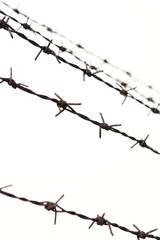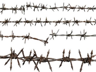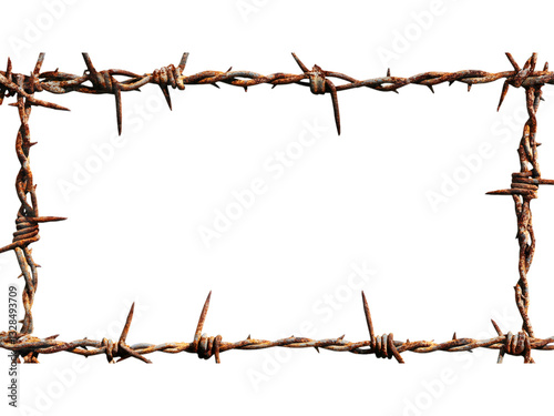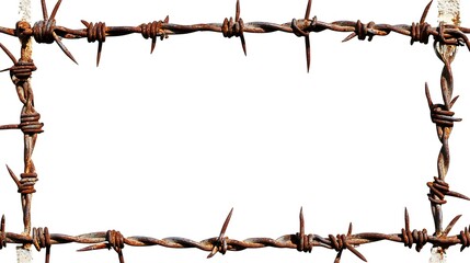 Podobny obraz A rusted barbed wire border framing a transparent background...