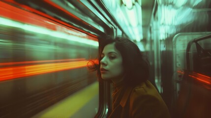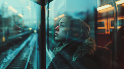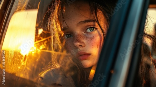 Podobny obraz Portrait of a thoughtful young girl looking out car...