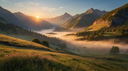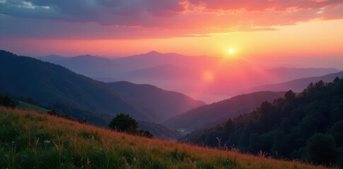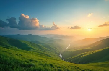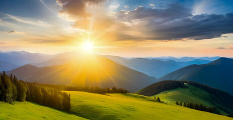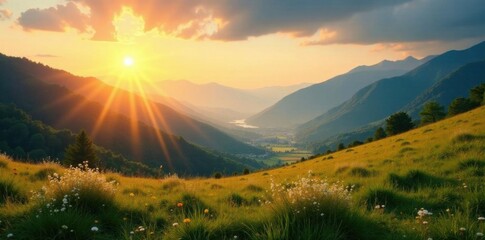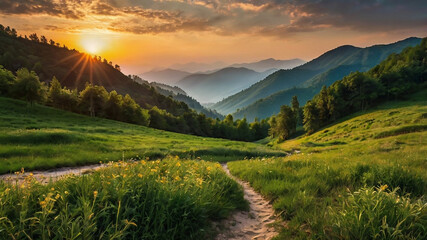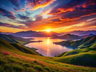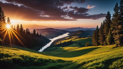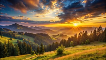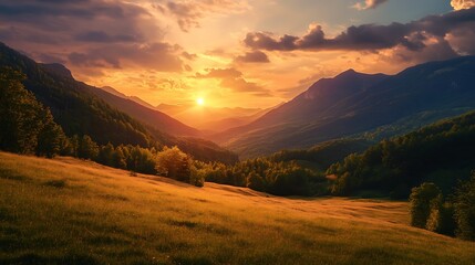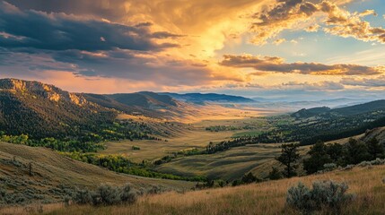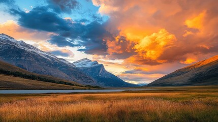 Podobny obraz Golden hour sunlight bathes a vibrant Canadian landscape...
