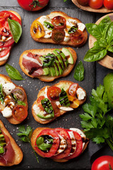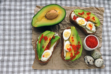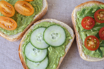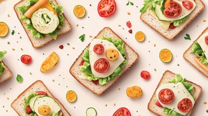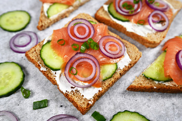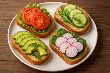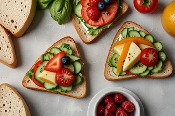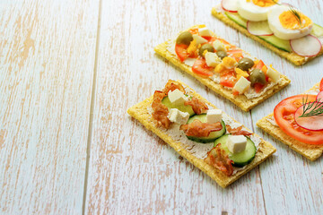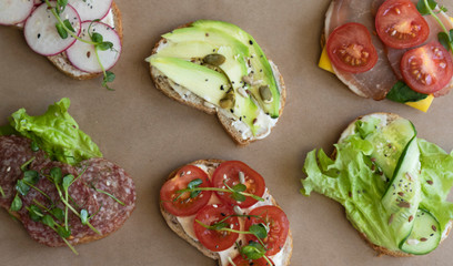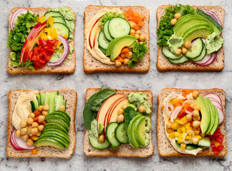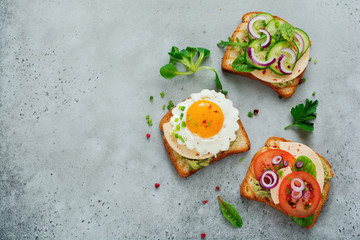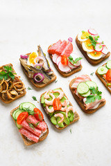 Podobny obraz Four delicious sandwiches on whole grain rye bread with...