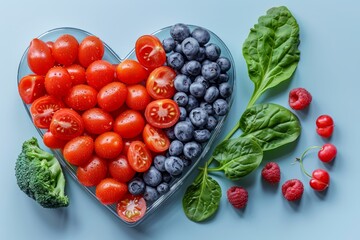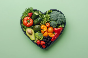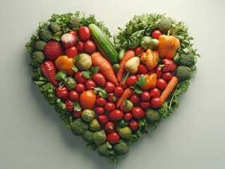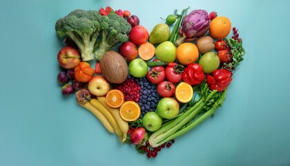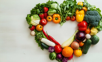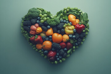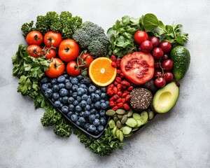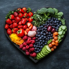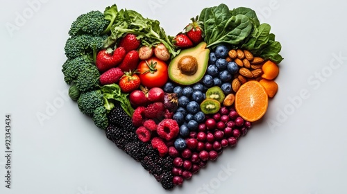 Podobny obraz Heart-shaped arrangement of healthy foods, colorful...