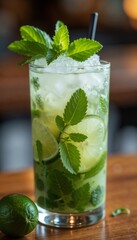 Podobny obraz Refreshing mojito with fresh mint and lime served in...